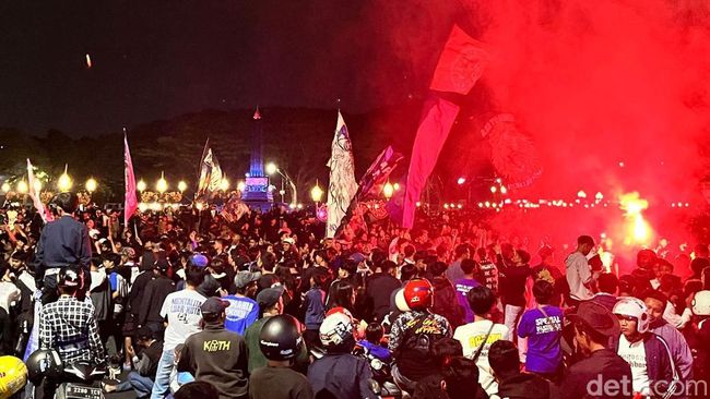 Kawasan Balai Kota Malang hingga Stasiun Kota Baru dipadati ribuan Aremania pada Minggu (10/8/2025) malam. Mereka berkumpul untuk memperingati HUT ke-38 Arema yang jatuh pada 11 Agustus 2025.