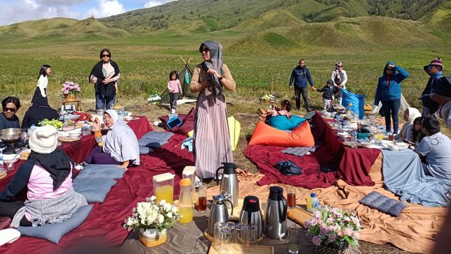 "Makan bersama di alam terbuka seperti ini sensasinya sangat berbeda, sarapan pertama saya makan bersama di Padang Savana Bromo, dan bisa menikmati alam yang indah sekali dan sejuk di Gunung Bromo," ujar Faida kepada detikcom, Jumat (14/1/2022).