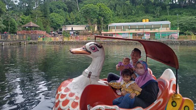 Ada pula wahana bebek air. Pengunjung bisa mengajak anak-anak naik bebek yang dikayuh dengan mengitari danau buatan. Tentu saja dengan pemandangan pepohonan hijau yang adem.