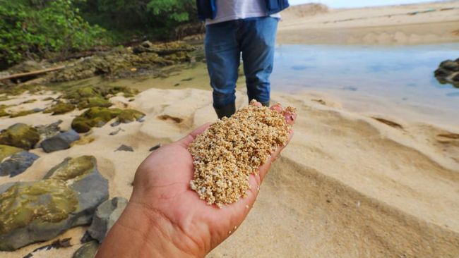 Ternyata pasir ini adalah hamparan fosil Foraminifera. Foraminifera merupakan kelompok hewan bersel satu (amoeba) termasuk dalam Filum Protozoa dan Kelas Sarcodina yang hidup di laut. Foraminifera sering digunakan sebagai indikator pencarian potensi minyak bumi.