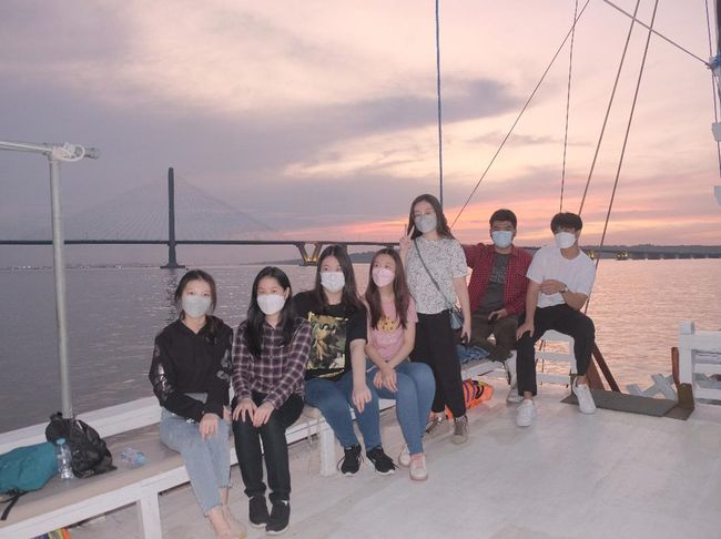Meski demikian, suasana senja di kolong Jembatan Suramadu tetap memukau. Lembayung senja seolah mewarnai jembatan tersebut. Sehingga rombongan tak buang-buang waktu untuk mengabadikan momen tersebut.