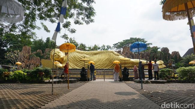 Patung Buddha tidur terbesar di Indonesia selalu ramai pengunjung setiap akhir pekan. Patung ini berada di Kabupaten Mojokerto.