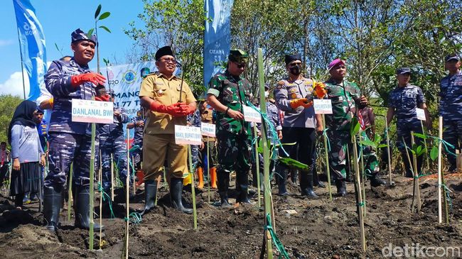"Memperingati Hari Mangrove se-dunia yang jatuh 26 Juli sekaligus memperingati HUT Kemerdekaan RI ke-77," kata Komandan Lanal Banyuwangi Letkol Laut (P) Ansori.
