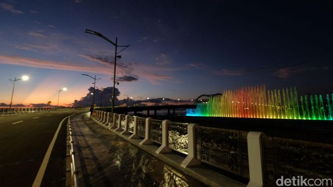 Dari jembatan ini, detikers bisa merasakan hangatnya sinar mentari. Saat Minggu pagi kerap digelar CFD atau Car Free Day, ini membuat suasana pagi di Jembatan Suroboyo makin seru tanpa bising kendaraan. Pemandangan makin cantik saat para nelayan berangkat mencari ikan, juga ada air mancur menari yang pas buat foto-foto.