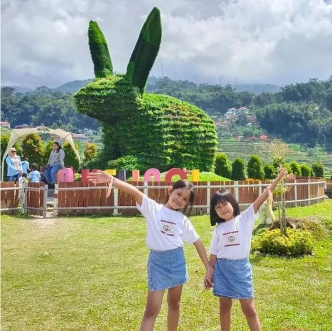 Uniknya, ada kebun kelinci di sana. Tempat di mana tumbuhan dibentuk seperti kelinci raksasa.