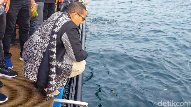Menparekraf Sandiaga Uno takjub dengan destinasi wisata Bangsring Underwater. Di destinasi yang berada di Kecamatan Wongsorejo itu, Sandiaga menyempatkan diri memberi makan ikan di laut lepas dengan roti.