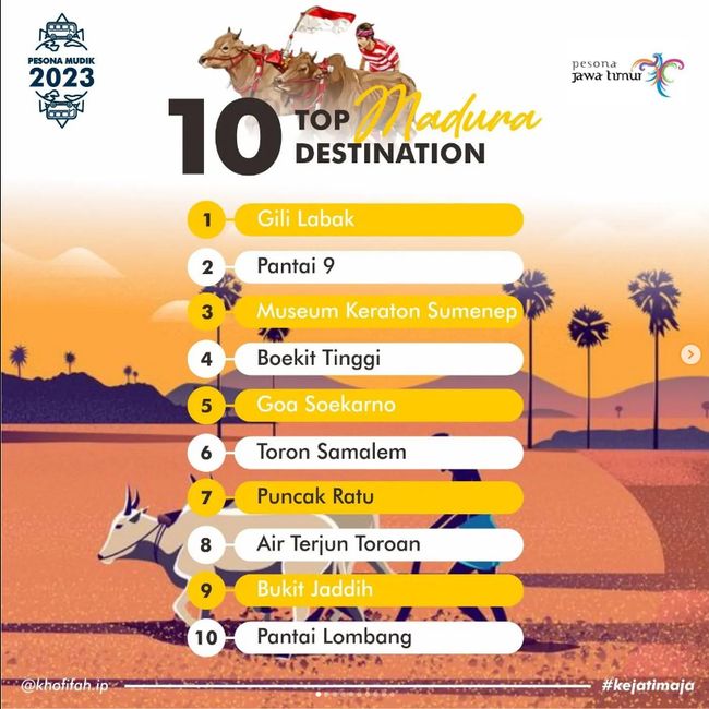 Pulau Madura merupakan bagian dari Provinsi Jawa Timur. Berikut sederet wisata di Pulau Madura yang direkomendasikan Gubernur Khofifah Indar Parawansa.