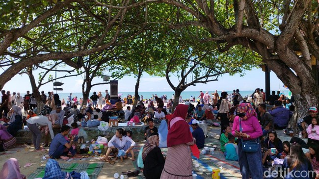 "Suasananya enak mas. Anginnya nggak bikin gerah, apalagi dibawa pohon sambil makan bekal. Ombaknya nggak terlalu besar juga. Jadi enak anak-anak selesai mandi, langsung makan di bawah pohon," kata Khoiriyah, pengunjung pantai lainnya asal Gresik.