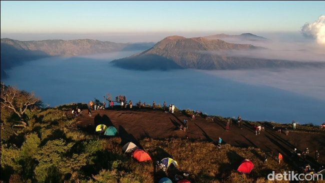 Sementara di sisi selatan, gunung tertinggi di Pulau Jawa yakni Gunung Semeru dengan gagah seakan menyambut matahari yang terbit dari ufuk timur.