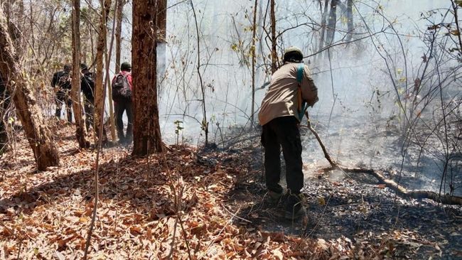 "Sebenarnya api mulai terdeteksi sejak hari Senin (25/9) kemarin. Lokasinya ada di beberapa titik di kawasan yang sulit dijangkau," jelas Joko.