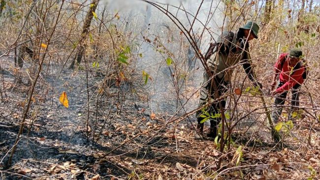 Api mulai terdeteksi sejak hari Senin (25/9/2023). Lokasinya berada di beberapa titik di kawasan yang sulit dijangkau. Akibatnya, pemadaman dilakukan secara manual. Yakni dengan metode gepyok dan membuat ilaran.