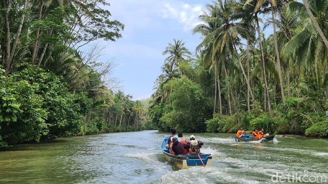 Pengunjung akan disuguhkan aliran air sungai yang jernih berwarna biru kehijauan. Selama menyusuri sungai menggunakan kapal, setiap pengunjung akan dilengkapi dengan jaket pelampung.