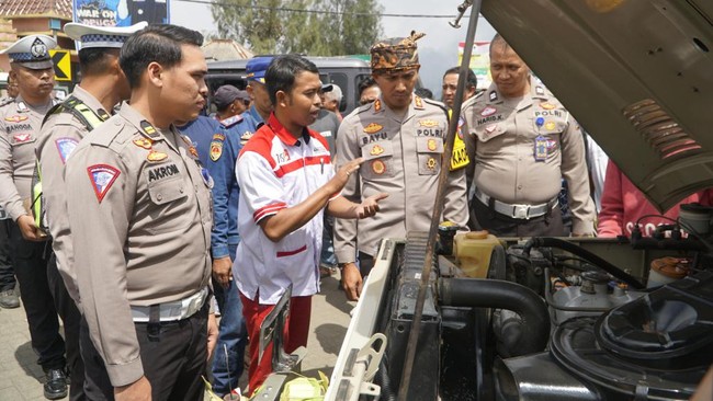 Pengecekan laik jalan jip dilakukan di Pendopo Agung, Desa Wonokitri, Kecamatan Tosari. Sebanyak 150 jip dicek dengan seksama oleh petugas Satlantas Polres Pasuruan dan dishub.