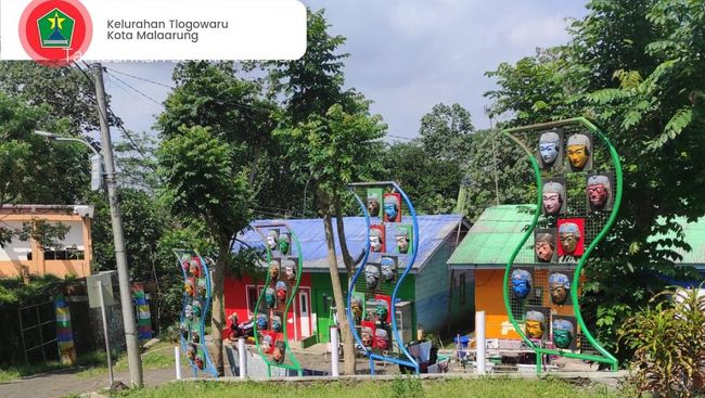Kampung Wisata 100 Topeng terletak di Tlogowaru, Kecamatan Kedungkandang, Kota Malang. Untuk dapat masuk ke kampung ini dikenakan biaya Rp 5 ribu per orang. Kampung ini terlihat cukup atraktif dengan dua patung raksasa berukuran 7,5 meter.