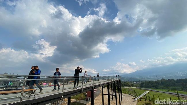 Daya tarik utama dari Malang Skyland adalah Sky Bridge. Dari area ini, detikers bisa melihat pemandangan sawah yang luas dan hijau serta view pegunungan yang begitu indah.