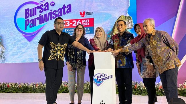 Dinas Kebudayaan dan Pariwisata (Disbudpar) Jawa Timur (Jatim) menggelar Bursa Pariwisata. Kegiatan digelar di Exhibition Hall Grand City Mall Surabaya, Kamis (23/5/2024).