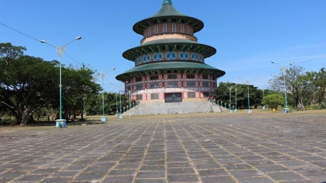 Dikenal dengan menara pagoda bertingkat yang khas, struktur ini memiliki desain yang menggabungkan elemen-elemen tradisional Tionghoa dengan sentuhan modern. Bangunan megah dengan ornamen khas oriental ini terlihat sangat menarik untuk di foto.