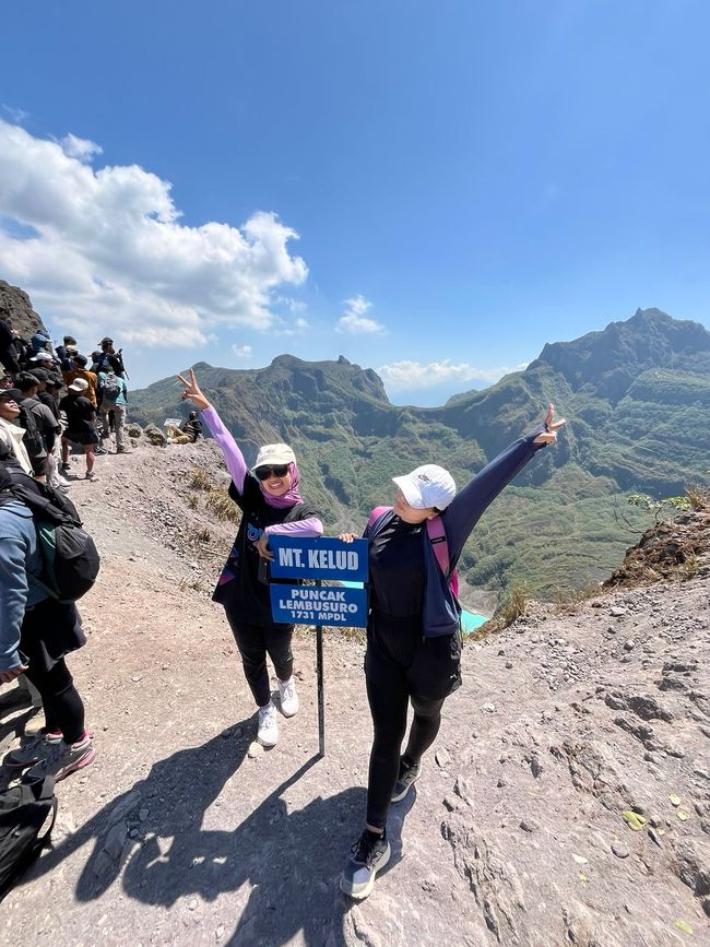 "Ada ratusan mungkin yang pas di sana, jadi kita antre dulu saat mau naik dan turun. Pas di puncak Gunung Kelud juga ramai dengan pendaki yang ambil foto dan sebagainya," terangnya.