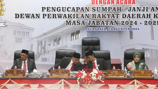Ketua DPRD Surabaya sementara Adi Sutarwijono menyampaikan itu. Dia tegaskan bahwa pimpinan definitif DPRD Surabaya masih menunggu rekomendasi dari DPP PDIP.