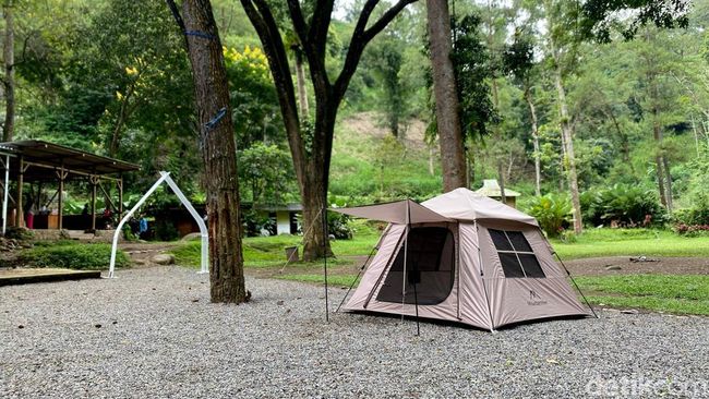Di tempat ini, tamu bisa menikmati suasana hutan alami yang dikelilingi pepohonan, ditemani suara gemericik air sungai dan semilir angin yang menyejukkan.