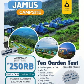 Bagi pencinta alam, Jamus Campsite menawarkan pengalaman berkemah dengan latar pemandangan kebun teh yang luas dan hijau. Cukup dengan biaya sekitar Rp250-300 ribu per tenda (kapasitas empat orang), pengunjung sudah bisa menikmati fasilitas lengkap tanpa repot mendirikan tenda sendiri.