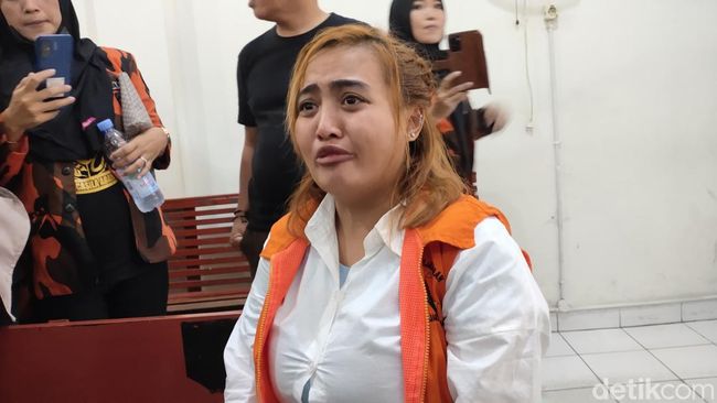 Sidang digelar di Pengadilan Negeri (PN) Kelas I Palembang, Sumatera Selatan. Awalnya dia tampak tegar, tersenyum saat memasuki ruang sidang. Namun raut mukanya segera berubah sedih.
