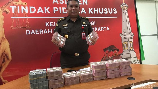 Uang miliaran rupiah itu terdiri dari beberapa bundel dengan pecahan berbeda. Ada pecahan Rp 50 ribu dan juga Rp 100 ribuan. Uang yang sudah diikat menjadi beberapa bundel itu diperlihatkan saat di kantor Kejadi DIY.