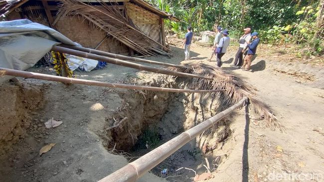 "Terus tiba-tiba ada suara gemuruh dari luar rumah. Pas saya cek ternyata muncul lubang di samping rumah saya," ujar Karyo.