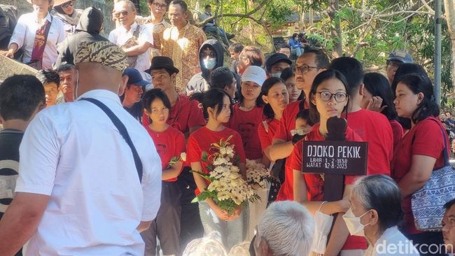 Pantauan detikJogja, tampak beberapa orang mengangkat peti berwarna putih yang berisi jenazah Djoko Pekik. Selanjutnya, mereka berjalan menaiki beberapa anak tangga untuk ke lokasi pemakaman.