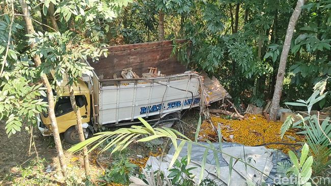 Truk bermuatan jeruk jatuh ke dalam jurang di Kalibawang, Kulon Progo. Warga sekitar sempat mendengar teriakan minta tolong dan menyaksikan korban yang tewas tertindih muatan jeruk.