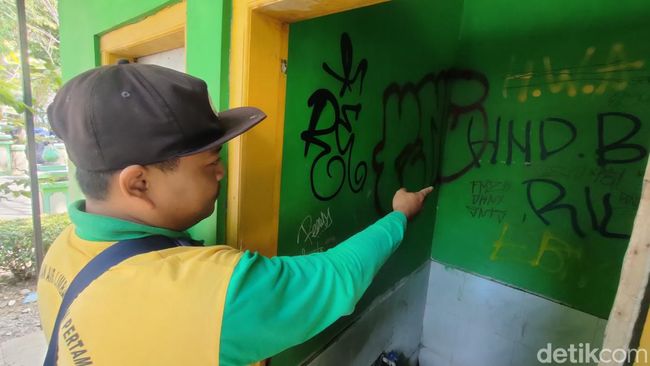 Pantauan detikJogja, bangunan toilet yang menjadi sasaran vandalisme berada di sisi barat Alun-alun Wates. Masih terlihat coretan yang memenuhi hampir seluruh bangunan tersebut.
