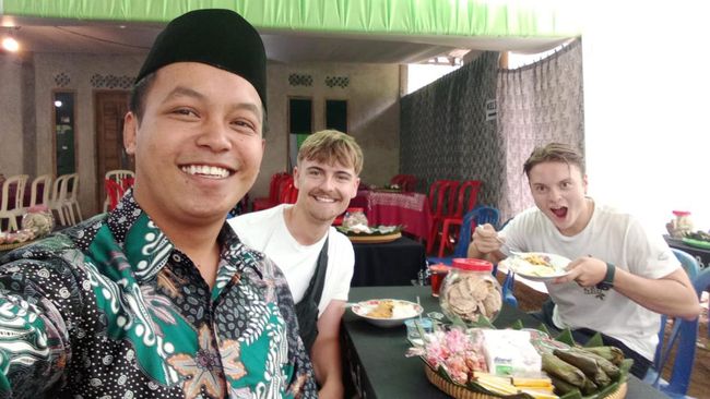 "Nah waktu itu saya persilakan mampir ke rumah, mangga pinarak dhahar (silakan datang makan) dan sebagainya ya yang seperti di video itu. Ya alhamdulillah dua bule itu mau mampir dan makan minum, terus duduk menikmati makanan seadanya, menikmati snack juga seadanya. Intinya gitu, Mas," imbuhnya.