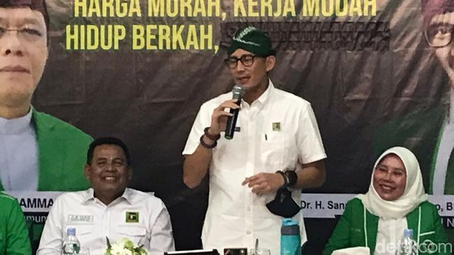 "Pertama adalah sosial media, fokus pada konten, minimal 1 hari 1 konten. Kedua berita TV, kita harus tiap hari ada di TV, isunya apa aja kita harus bicara, (seperti) pariwisata, PPP di depan. Isunya mengenai politik kita harus bicara," ujar Sandiaga.