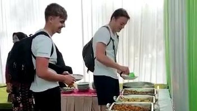 "Nah waktu itu saya persilakan mampir ke rumah, mangga pinarak dhahar (silakan datang makan) dan sebagainya ya yang seperti di video itu. Ya alhamdulillah dua bule itu mau mampir dan makan minum, terus duduk menikmati makanan seadanya, menikmati snack juga seadanya. Intinya gitu, Mas," imbuhnya.