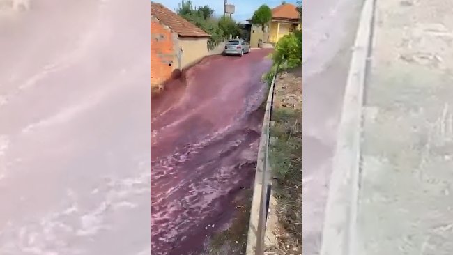 Tangki penyulingan anggur di kota São Lourenço do Bairro, Portugal, jebol. Akibatnya kota tersebut dibanjiri ribuan galon anggur merah alias amer.