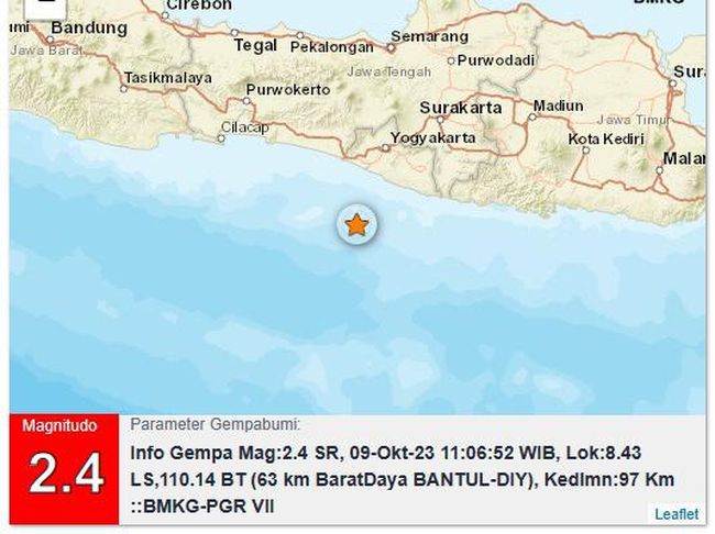 "Info Gempa Mag:2.4, 09-Okt-23," demikian dikutip dari akun resmi X BMKG DIY @bmkgjogja, Senin (9/10/2023).