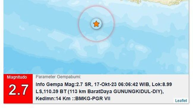 "Info Gempa Mag:2.7, 17-Okt-23," demikian dikutip dari akun resmi X BMKG DIY @bmkgjogja, Selasa (17/10/2023).