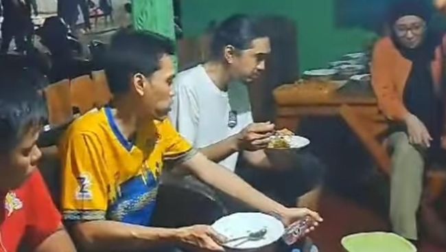 Nampak dalam video yang diunggah oleh akun itu, Duta yang memakai kaus berwarna putih lahap menyantap hidangannya. Masih dari video itu, nampak tak ada sekat antara Duta dan warga yang lain.