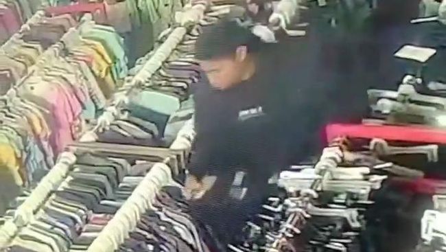 Dalam video berdurasi sekitar 1 menit ini menunjukkan kompilasi saat dua pelaku laki-laki dan perempuan, usia kisaran 30-40 tahun, berpura-pura jadi pembeli dan sedang memilih baju di toko.