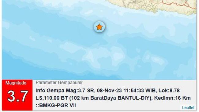 "Info Gempa Mag:3,7, 08-Nov-23," kata Badan Meteorologi, Klimatologi, dan Geofisika (BMKG) dalam keterangan tertulisnya, Rabu (8/11/2023).
