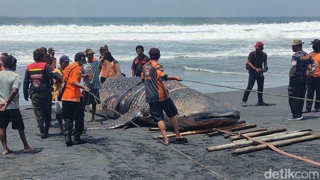 Dari pengamatan detikJogja di lokasi pagi ini, Kamis (9/11), bangkai hiu tersebut terlihat masih berada di bibir pantai. Tim SAR gabungan dibantu relawan dari Sedulur Rescue Yogyakarta tampak sibuk berupaya mengevakuasi bangkai hiu itu ke daratan.