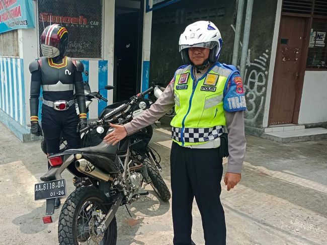 Seorang pemotor yang memakai kostum superhero Kesatria Baja Hitam ditilang polisi di simpang empat Kentungan, Sleman, beberapa hari yang lalu. Polisi mengungkapkan respons pemotor berkostum superhero itu saat ditilang.