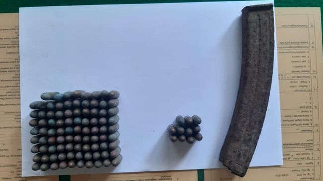 "Setelah dicek, ternyata berisi amunisi/peluru sejumlah 88 butir yang terdiri dari 87 peluru kaliber 9 mm dan satu peluru kaliber 38 mm. Selain itu ada satu buah magasin berisi 11 butir peluru kaliber 9 mm," ujarnya.