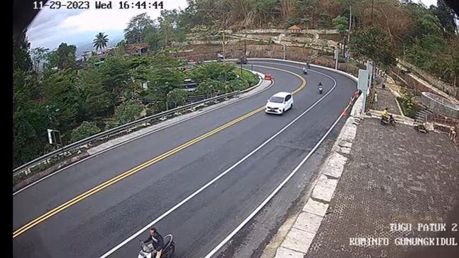 Pantauan detikJogja melalui CCTV Diskominfo Gunungkidul di titik Tugu Selamat Datang Patuk, Rabu (29/11/2023) pukul 16.45 WIB, kondisi lalin di jalur tersebut terpantau ramai lancar. Kendaraan roda dua mendominasi jalan itu.
