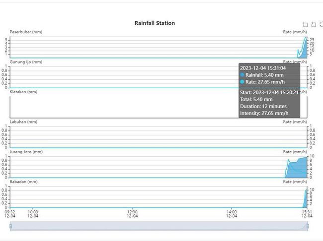 "Hujan di puncak #Merapi tanggal 4 Desember 2023 tercatat mulai pukul 15.20 WIB dengan total curah hujan 5 mm. Saat ini hujan masih berlangsung," demikian cuit akun resmi X BPPTKG @BPPTKG pada pukul 15.35 WIB, Senin (4/12/2023).