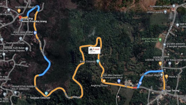Jalur Cinomati di Pleret, Bantul, dikenal sebagai jalur ekstrem yang rawan kecelakaan maut. Jalur Cinomati pun diusulkan dihapus dari Google Maps.