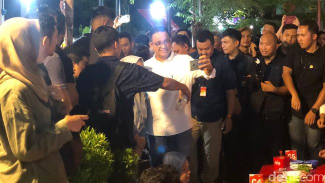 Pantuan detikJogja di lokasi, Anies beserta rombongan tiba di Malioboro pada pukul 20.30 WIB. Tampak dalam rombongan sang istri Fery Farhati dan juga putrinya Mutiara Annisa.