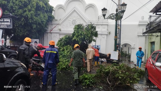 Keterangan dalam unggahan tersebut juga mengonfirmasi pohon tumbang telah dievakuasi oleh petugas TRC BPBD DIY dan relawan dari Kemantren Gondomanan.