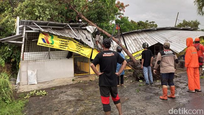 Hujan deras disertai angin kencang terjadi di wilayah Bantul mengakibatkan belasan pohon tumbang. Di antaranya pohon tumbang menimpa warung di Sonopakis Kidul, Ngestiharjo, Kasihan, Bantul tumbang dan menimpa warung.