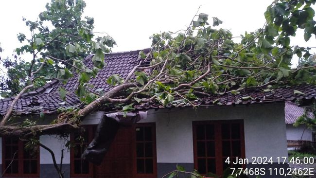 "Di Nogotirto, Gamping, pohon munggur tumbang menimpa gudang dan kandang ayam," jelasnya.